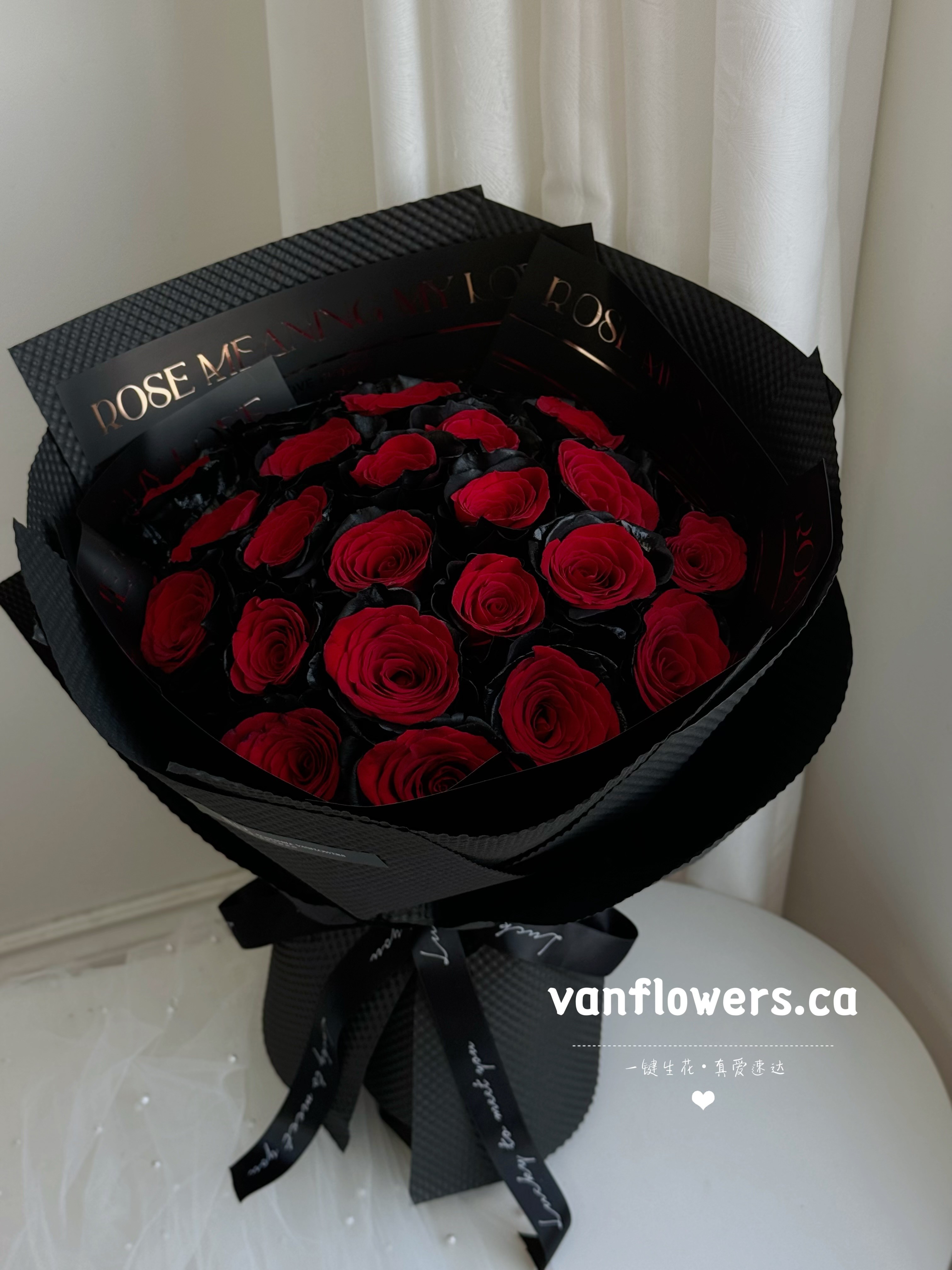 花材:24枝厄瓜多尔染色黑红玫瑰