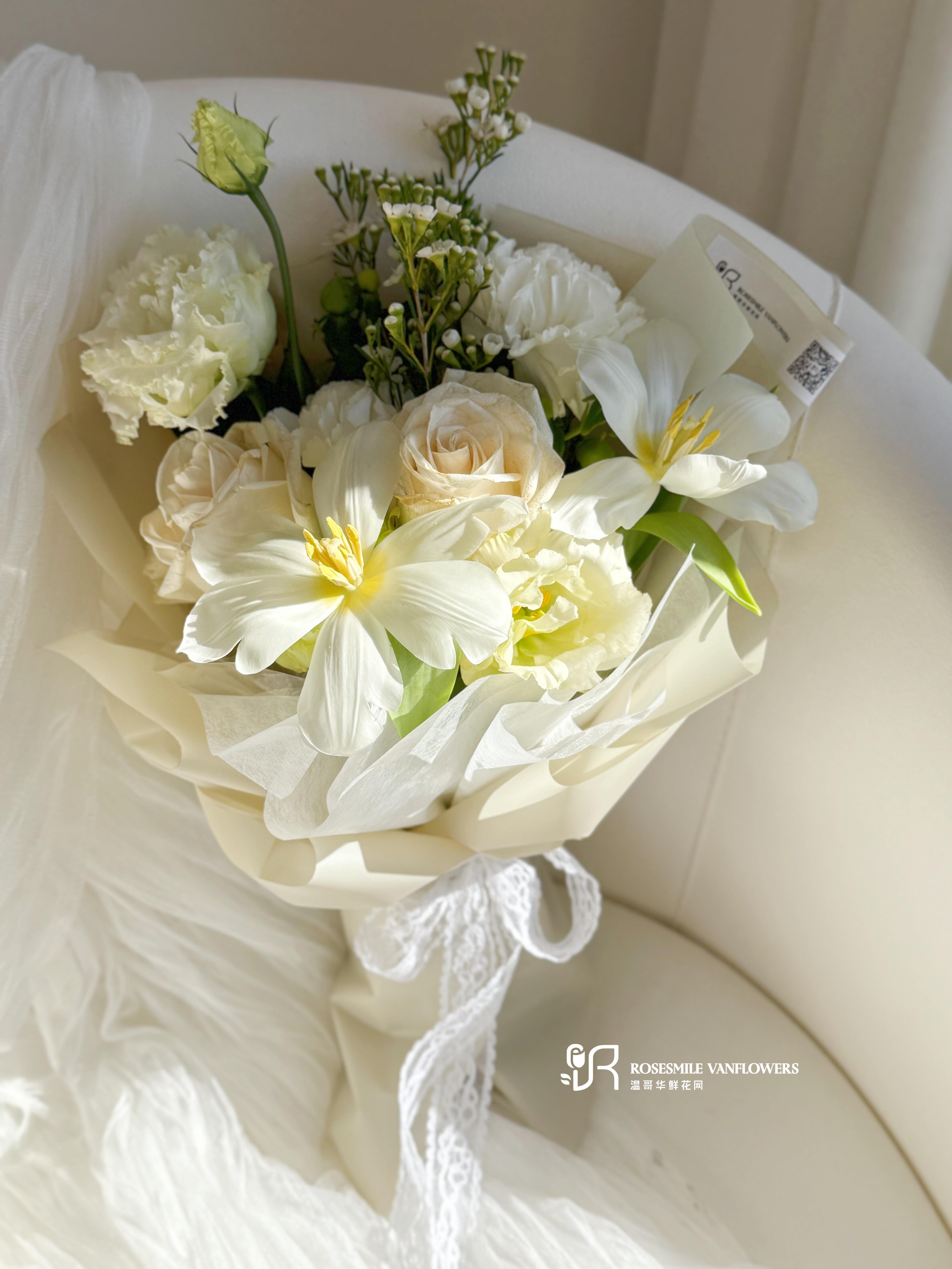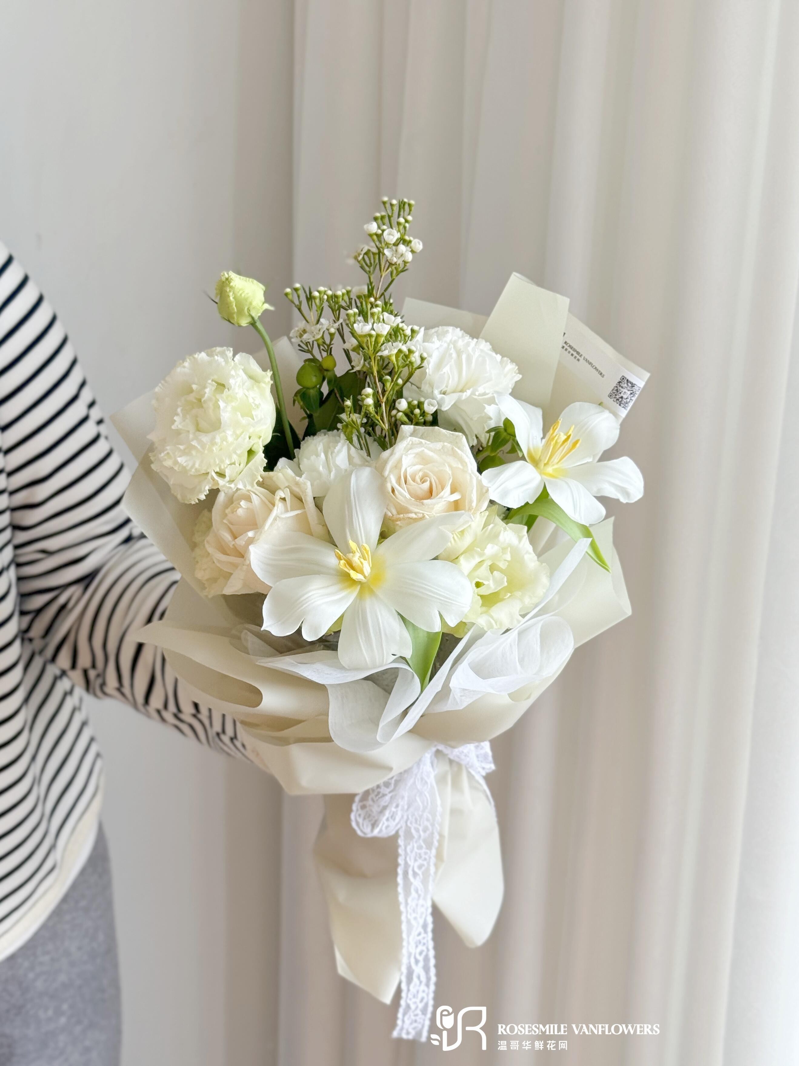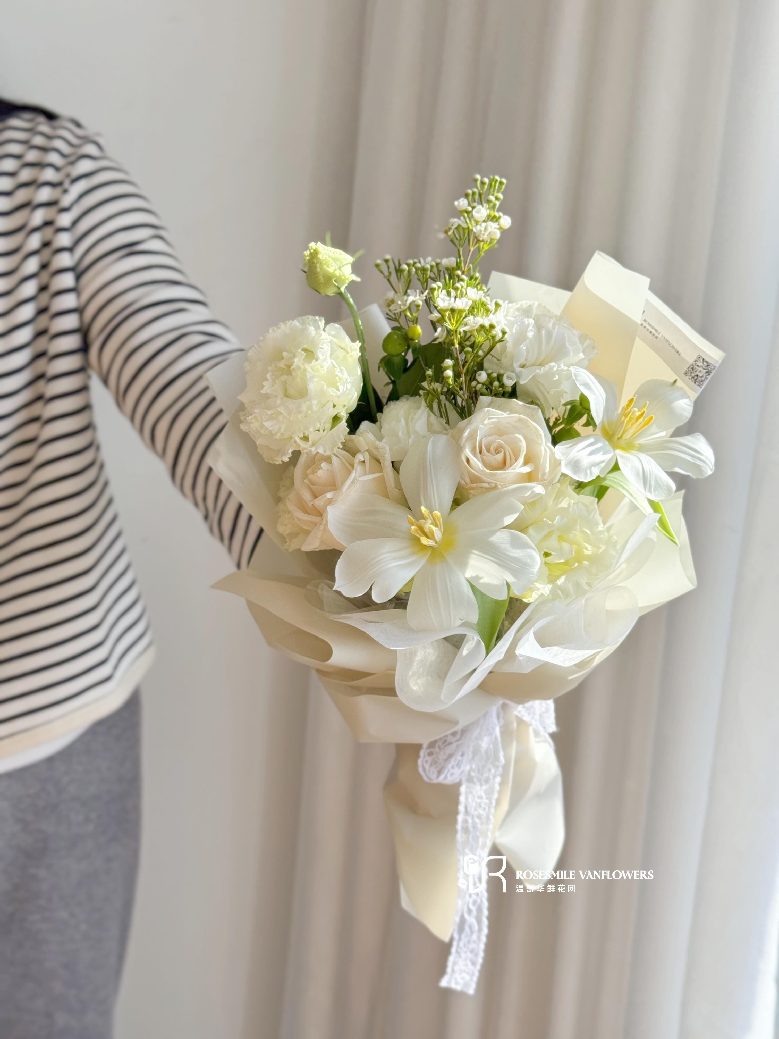 花语花愿:愿你的生活纯净如光,温暖平静,像这束花一样清新雅致。