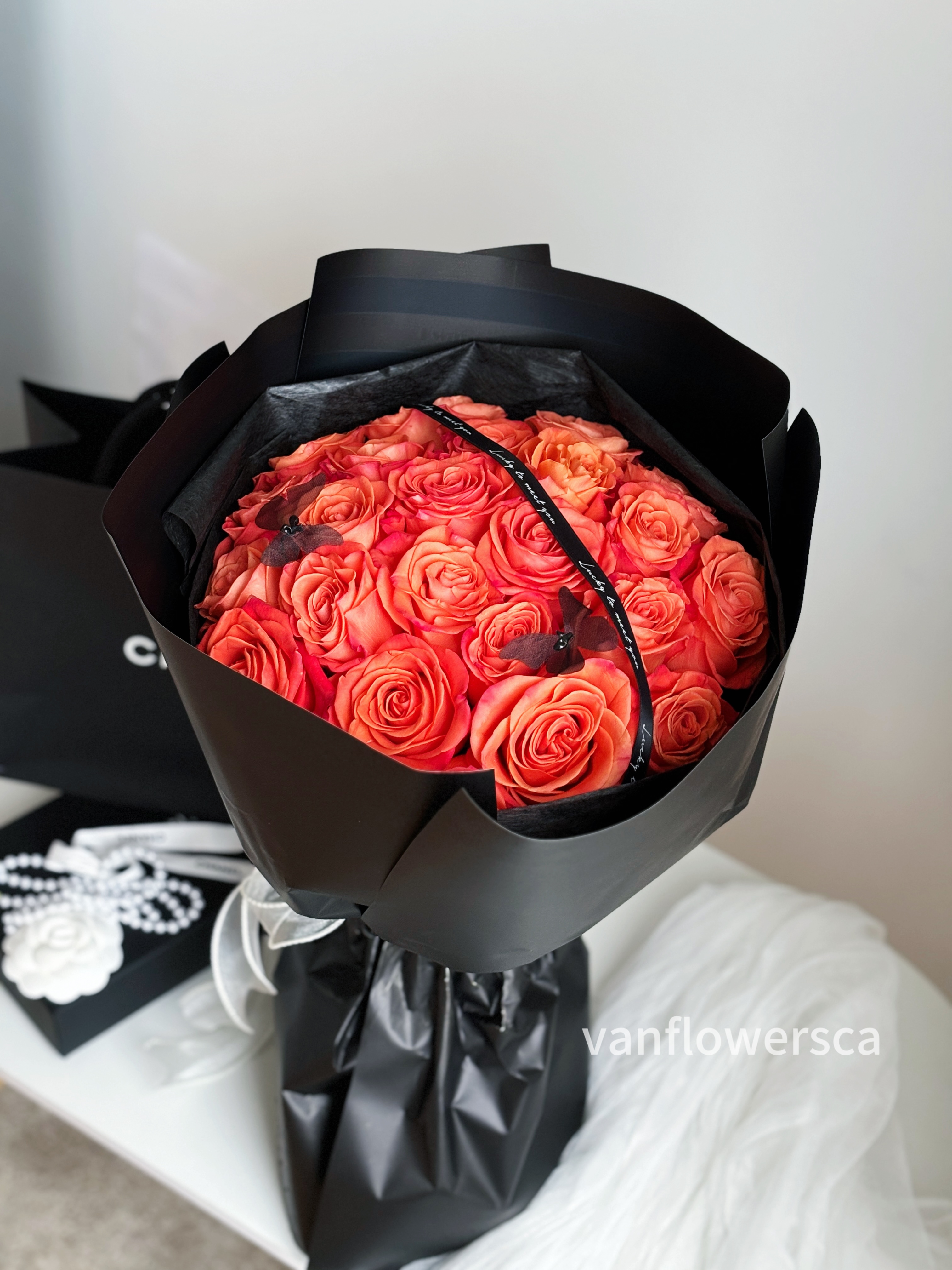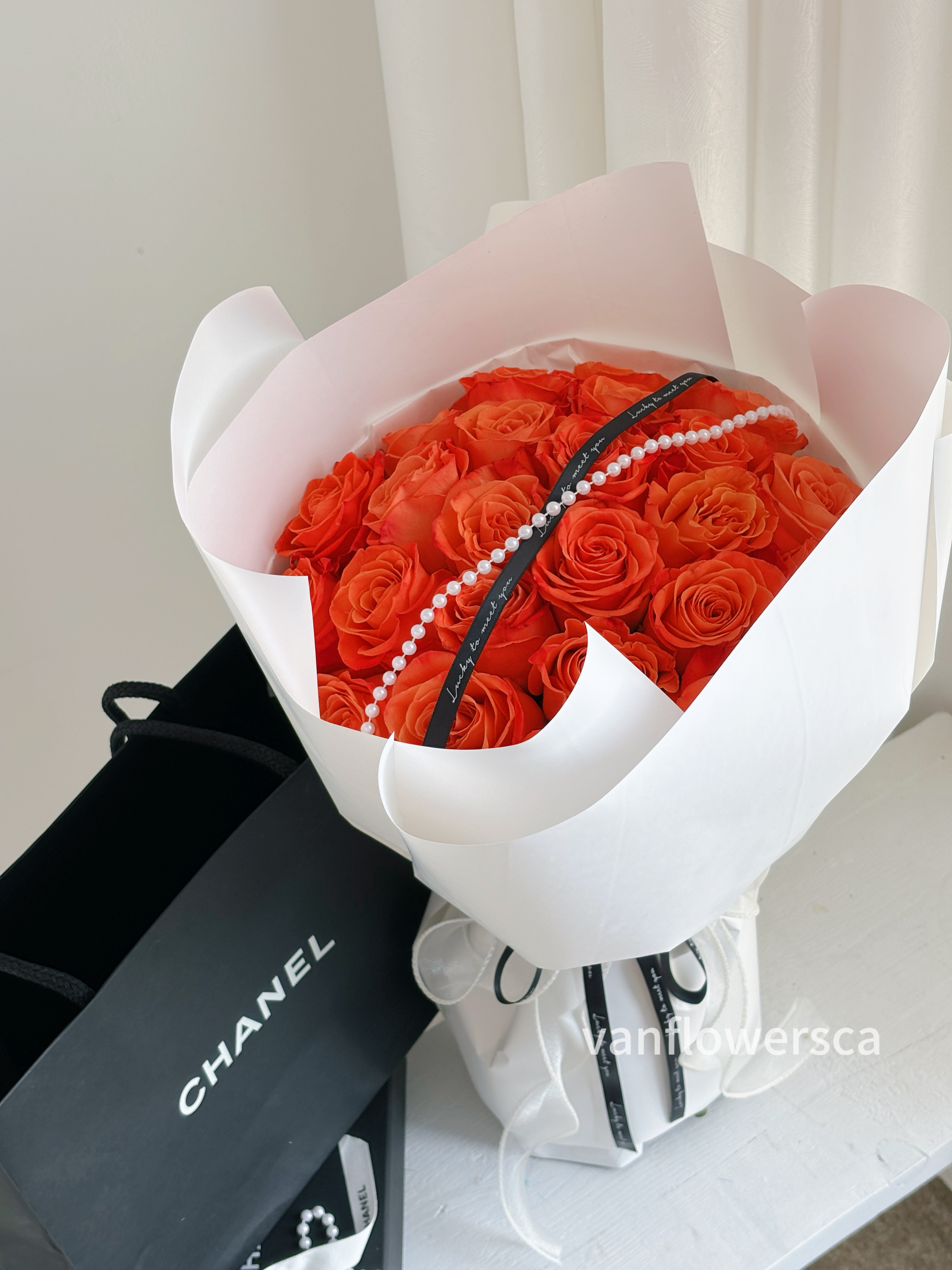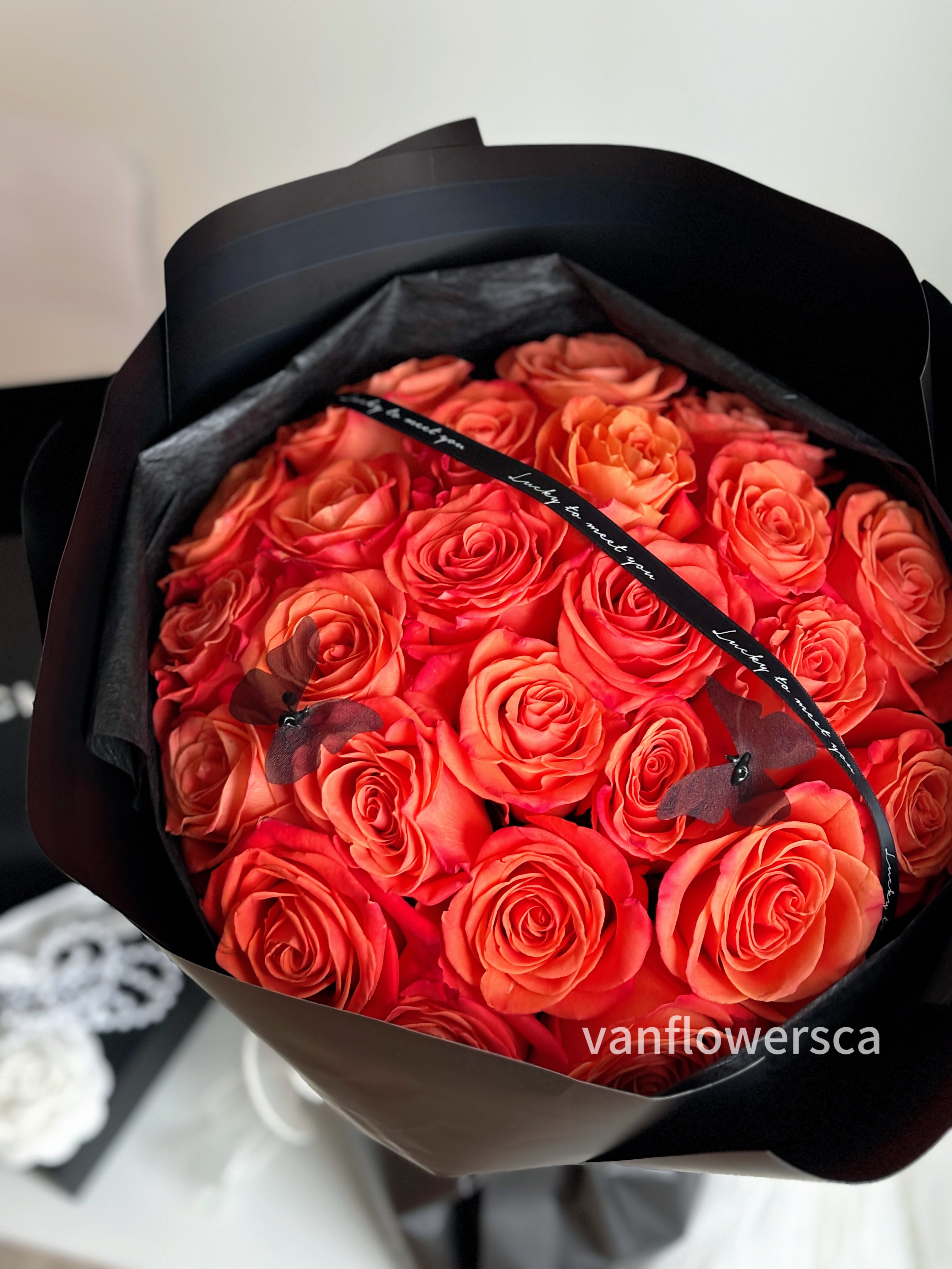 花语花愿:橙色玫瑰温暖而明亮,散发着无尽的希望与热情。愿这份光芒带给你生活中的每一份力量与温暖,点亮未来的每一段旅程。