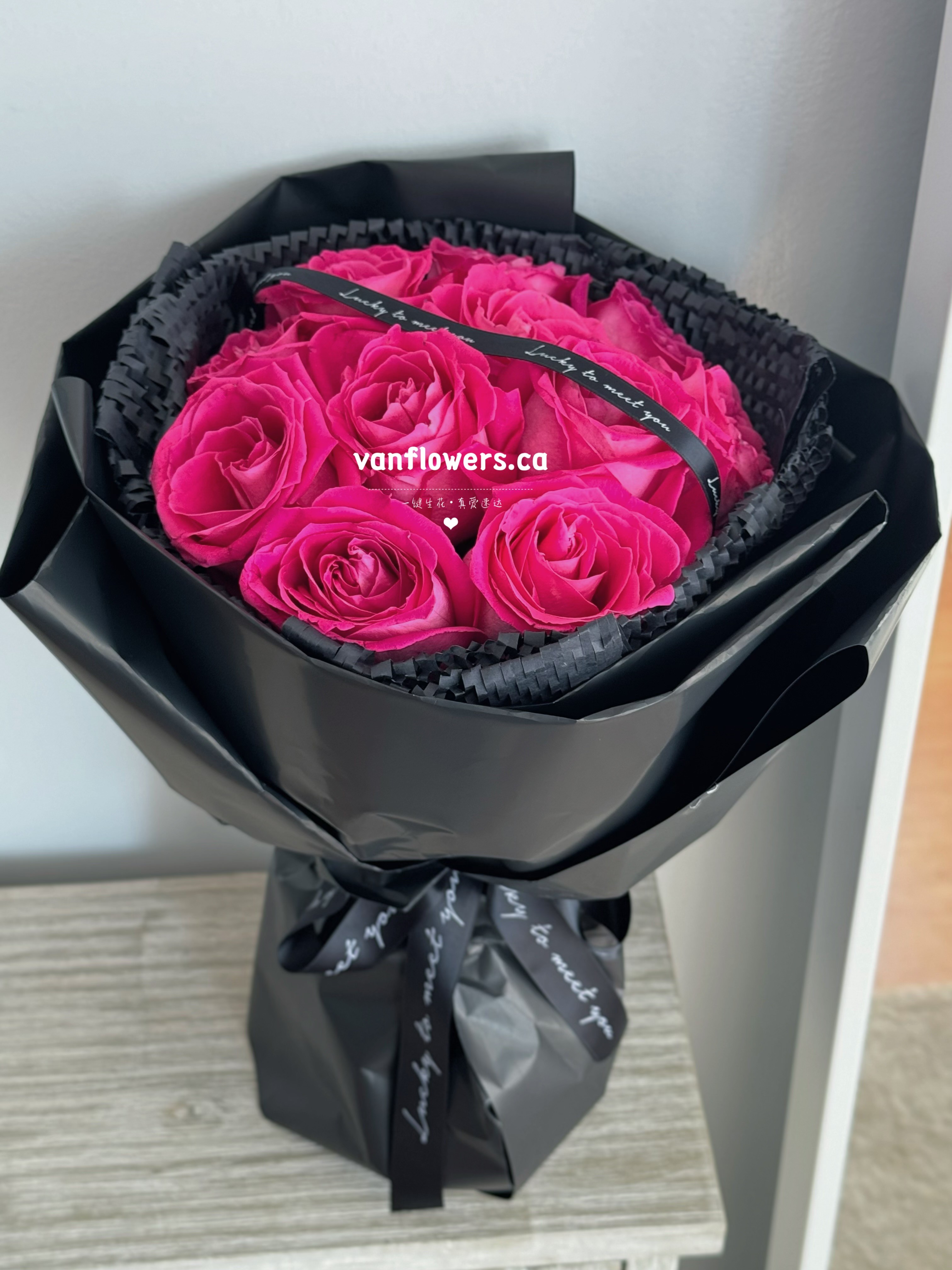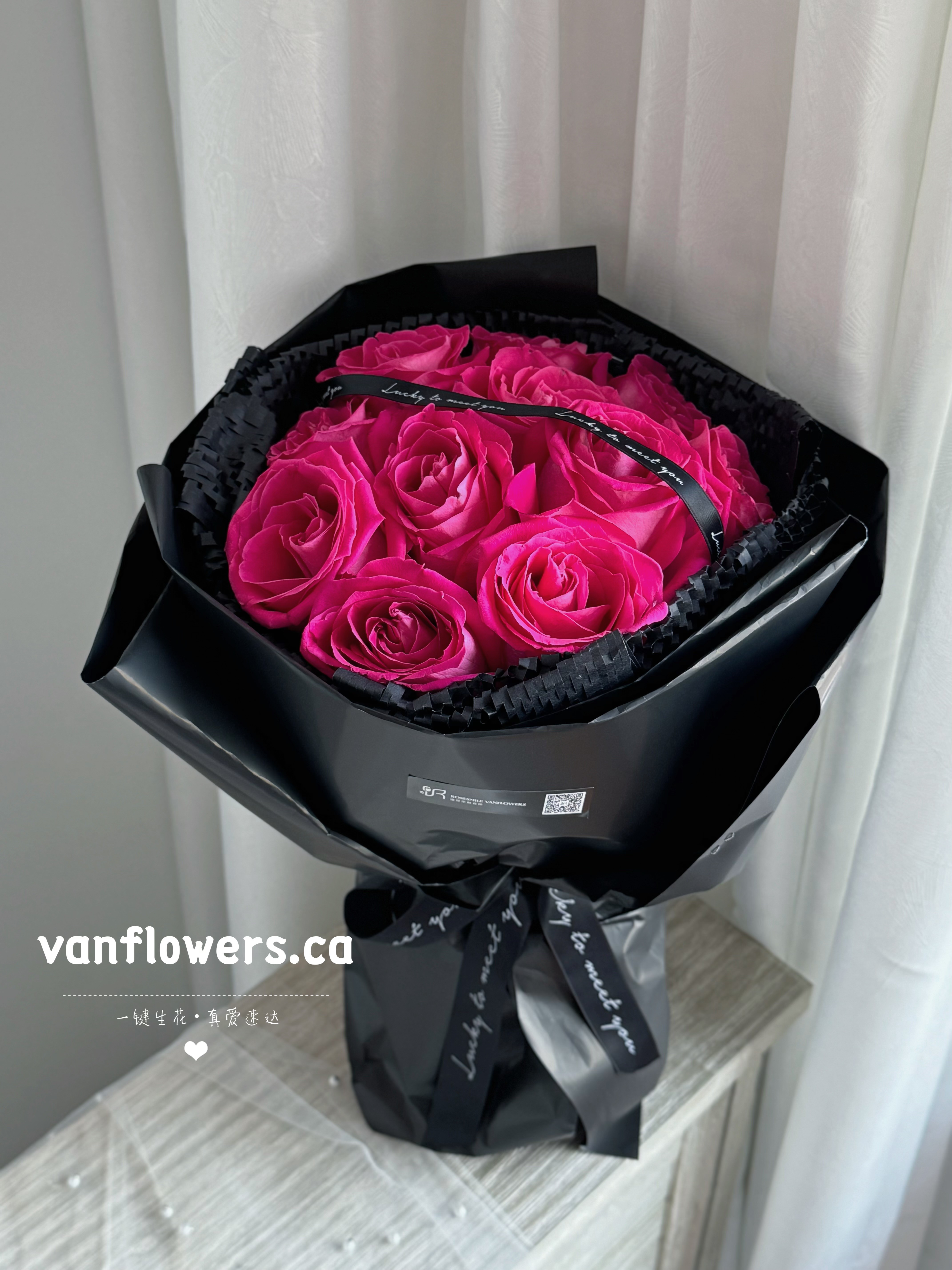 花材:11枝玫红玫瑰
