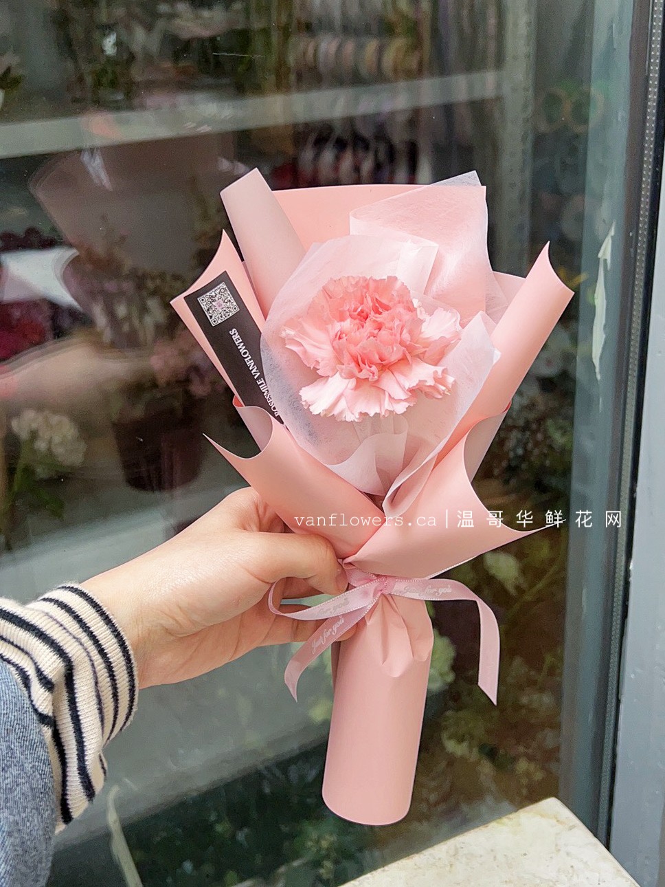 花名:馨语,花材:单枝康乃馨,精包装包装:康乃馨可选色,包装随机协调搭配,附送留言卡片花语:温馨、真挚