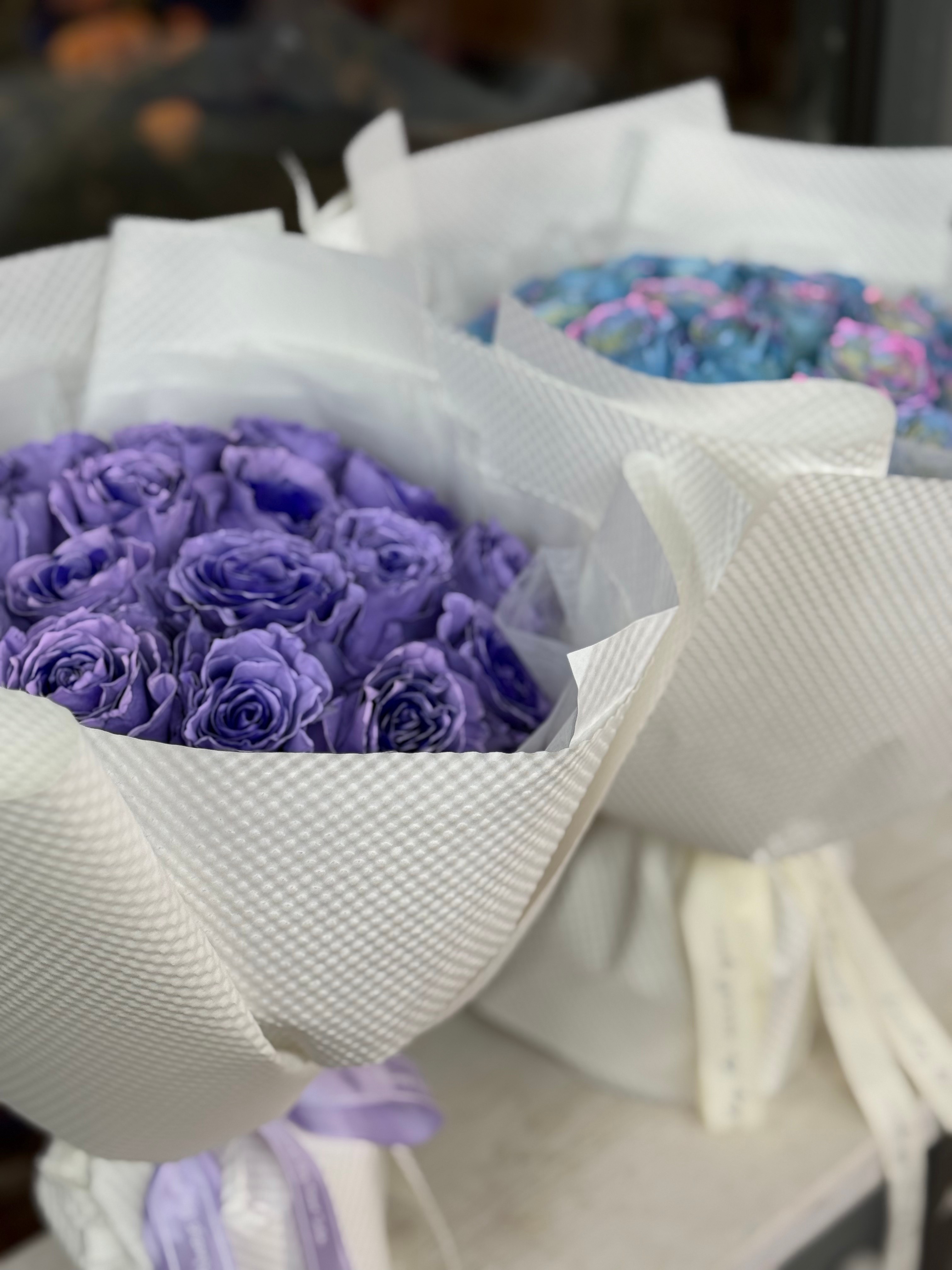 花材:24枝厄瓜多尔薰衣草紫色彩玫