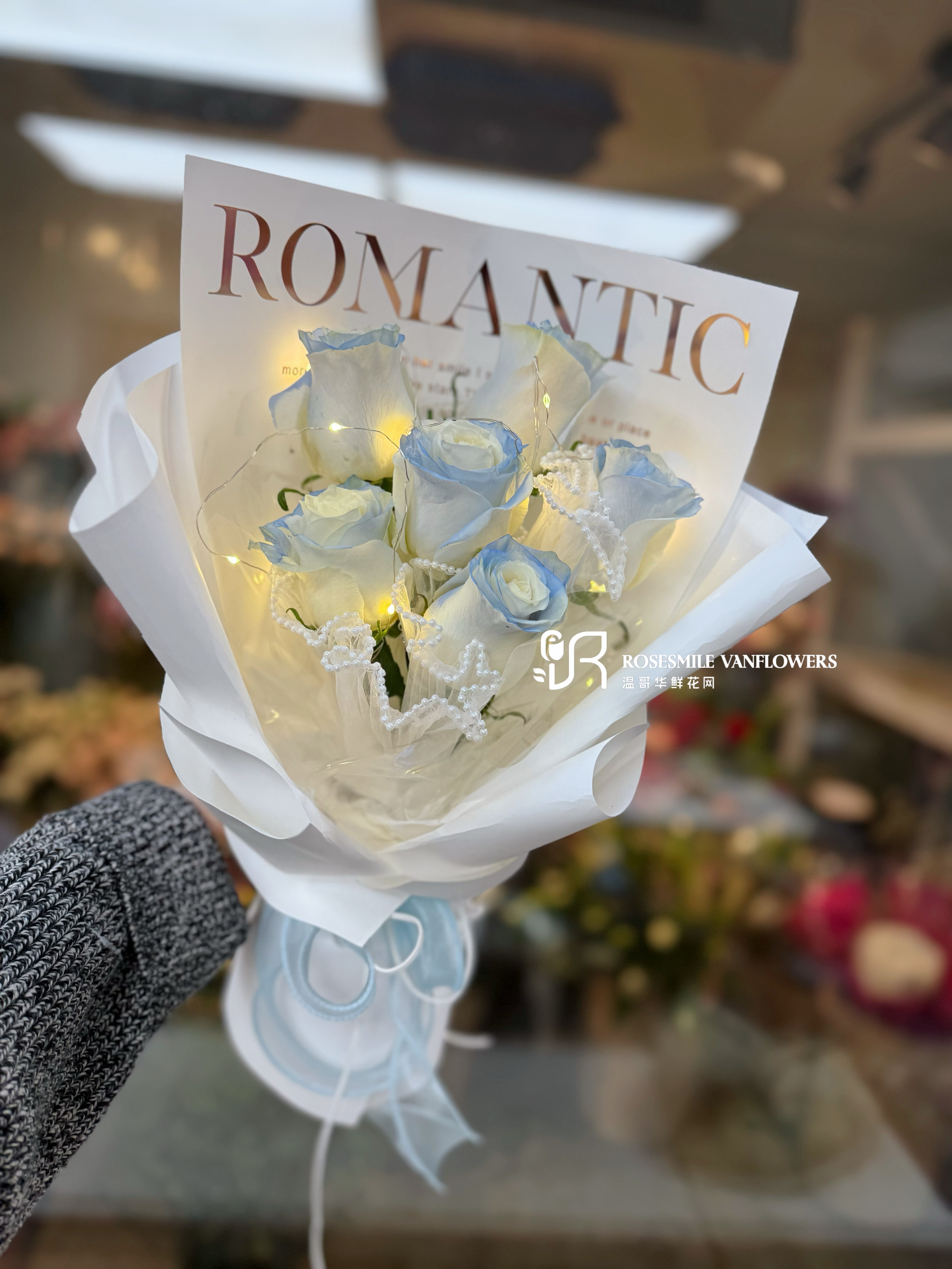 花材:6枝厄瓜多尔喷蓝玫瑰(可增减数量)