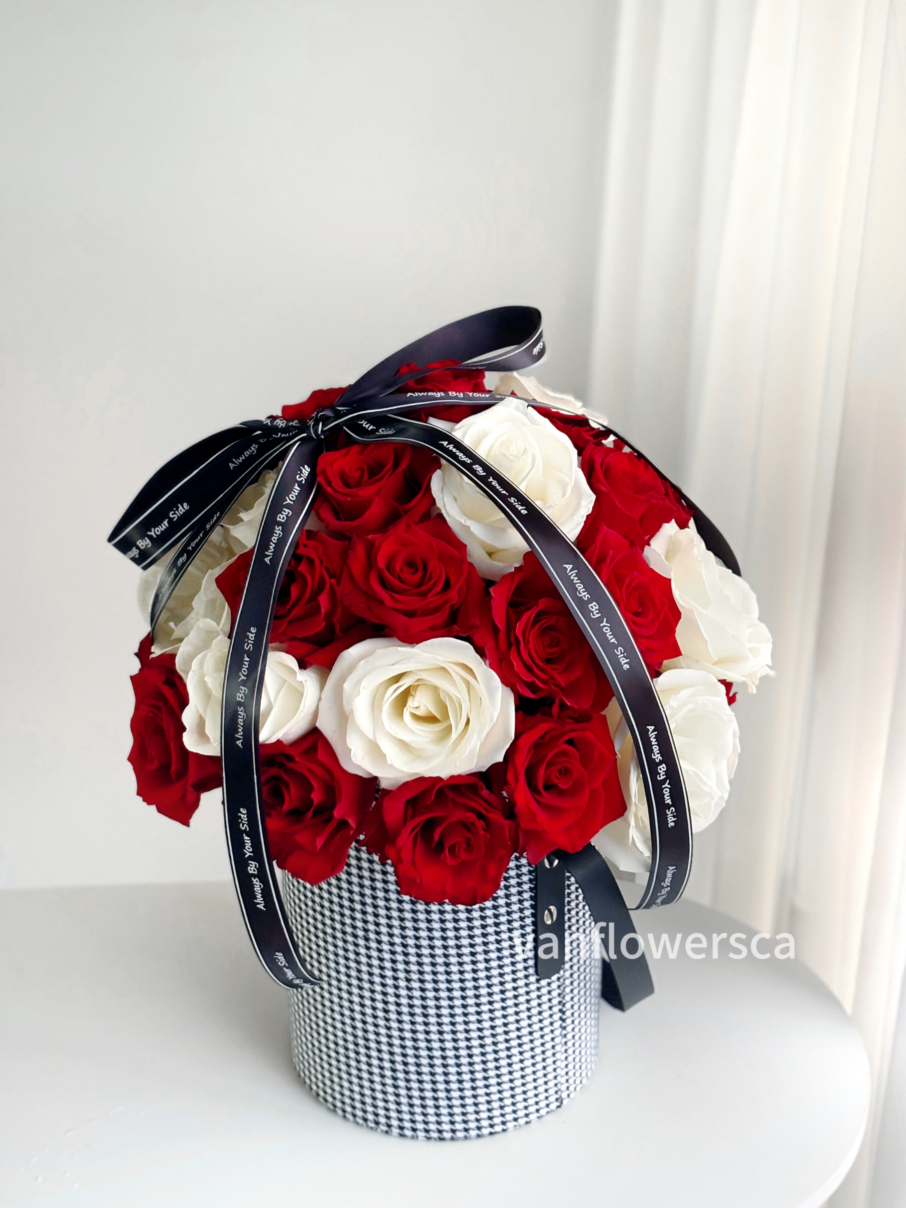 花材:红玫瑰、白玫瑰 共39枝(可以全红玫瑰或其他颜色)